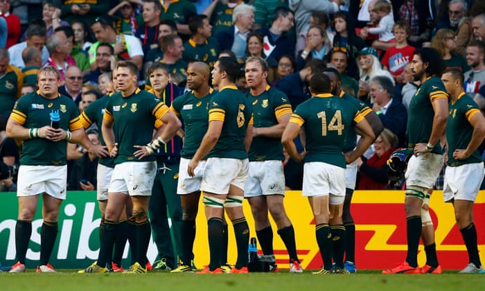 Bývalý juhoafrický full-back Thinus Delport považuje Bokov za "unavený a starý" proti Japonsku. Je ťažké toľko nesúhlasiť: už v ranom štádiu bolo jasné, že Japonsko bude trpieť, ale keď Heyneke Meyerová vytiahla núdzový kábel, nič sa nestalo.Jean de Villiers bol kľúčovou postavou kapitána, ale jeho kolená a čeľuste zranenia sa spojili, aby ho opustiť tieň svojho bývalého vplyvného ja. Namiesto toho, aby kolektívne hromu a zlosťou vpredu, aj tam bol nápadný nedostatok konzistentného výkonu. Meyer by urobil lepšie začať s Willie Le Roux, Eben Etzebeth a Damian de Allende, medzi ostatnými, ale zúrivé reakcie by teraz mala byť zabezpečená proti Samoa v Birminghame tento víkend a Škótsko v Newcastle. Ak tomu tak nie je, pokiaľ ide o Pool B kvalifikácia, bude to Sayonara.RK • Meyer ospravedlňuje juhoafrického národa porážku v Japonsku • Ako Juhoafrickej republiky tlačová reagoval poraziť • V obrazoch: Japonská neuveriteľné víťazstvo Facebook Twitter Pinterest Juhoafrický hráči vyzerajú ohromení po Karni Hesketh v poslednej vydýchnutie pokus získal Japonsku 34 - 32 víťazstvo nad z roku 1995 a 2007 majstri sveta. Fotografie: Julian Finney / Getty Images3) O koľko viac sa do Anglicka dostal dať